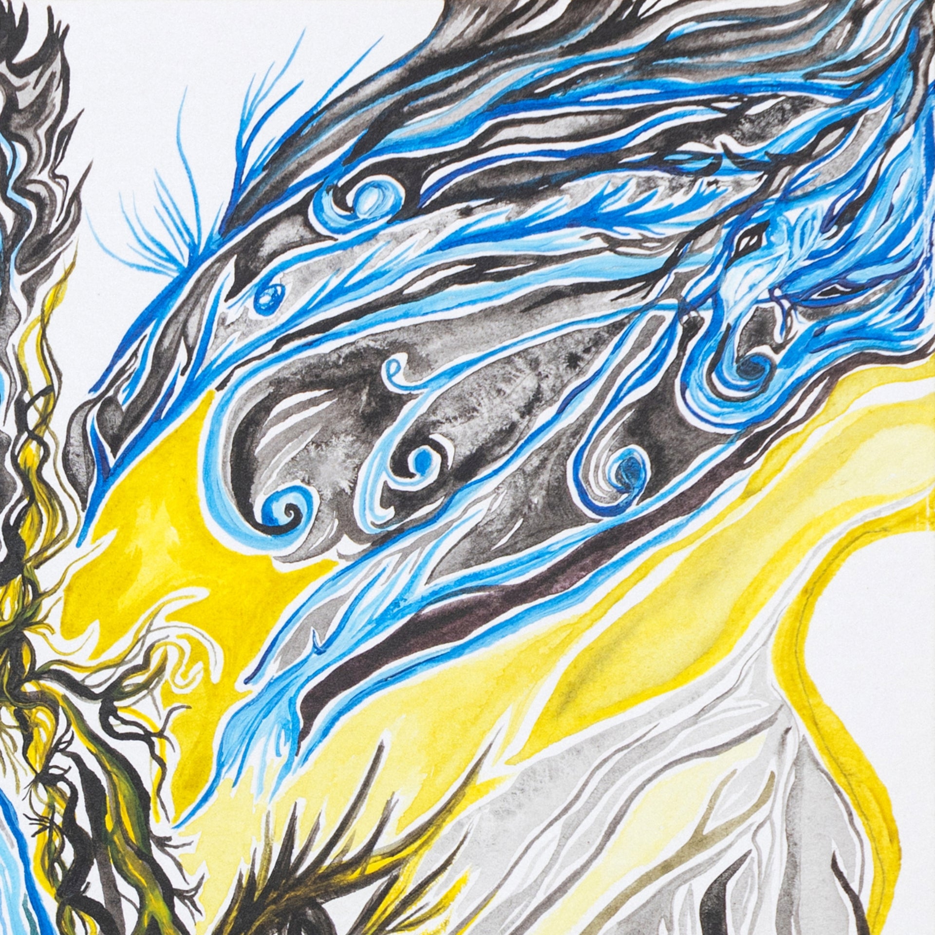 Its colours move with intention, pulling the eye through rhythm and contrast. Each detail invites exploration, where form is experienced rather than explained, and meaning reveals itself through sensation.